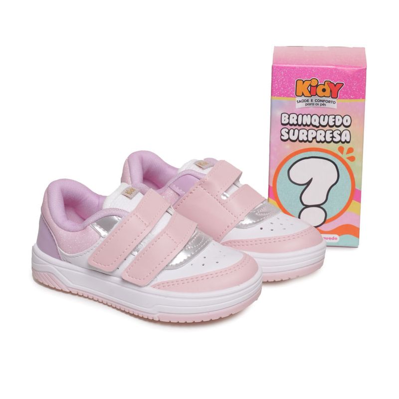 O tênis Kidy oferece conforto e diversão para crianças com design colorido e brinquedo surpresa. Seu material resistente garante durabilidade para o uso diário. Escolha Kidy para estilo e segurança nos passos dos pequenos.