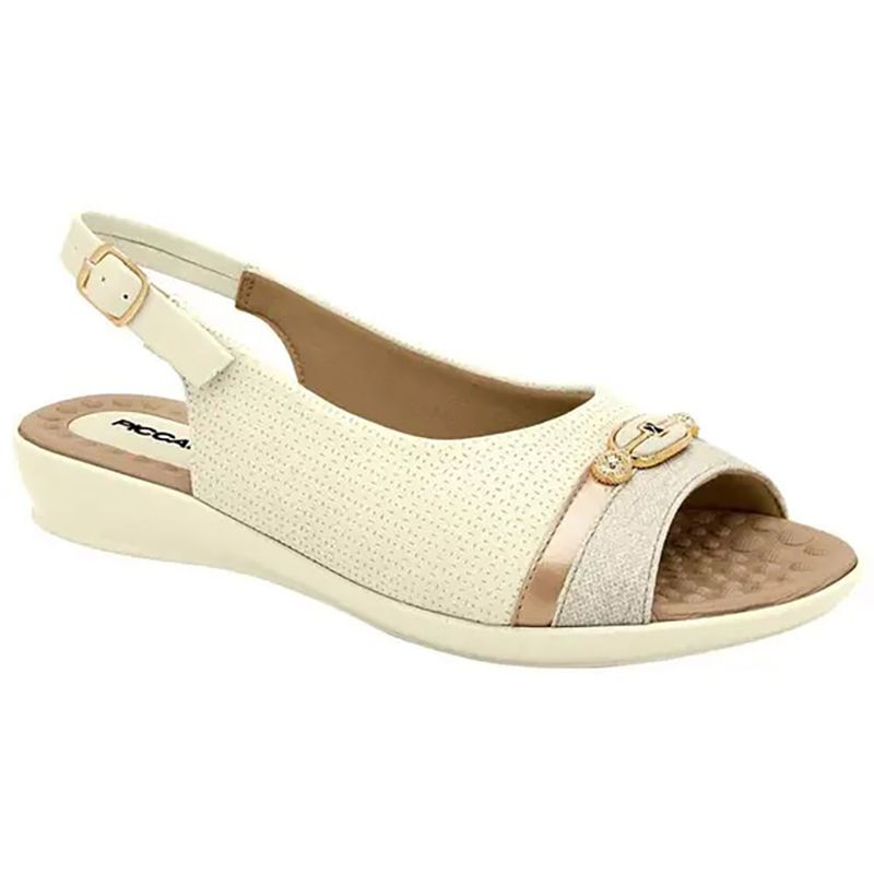 Sandália Anabella Piccadilly Feminino Off White e Dourado