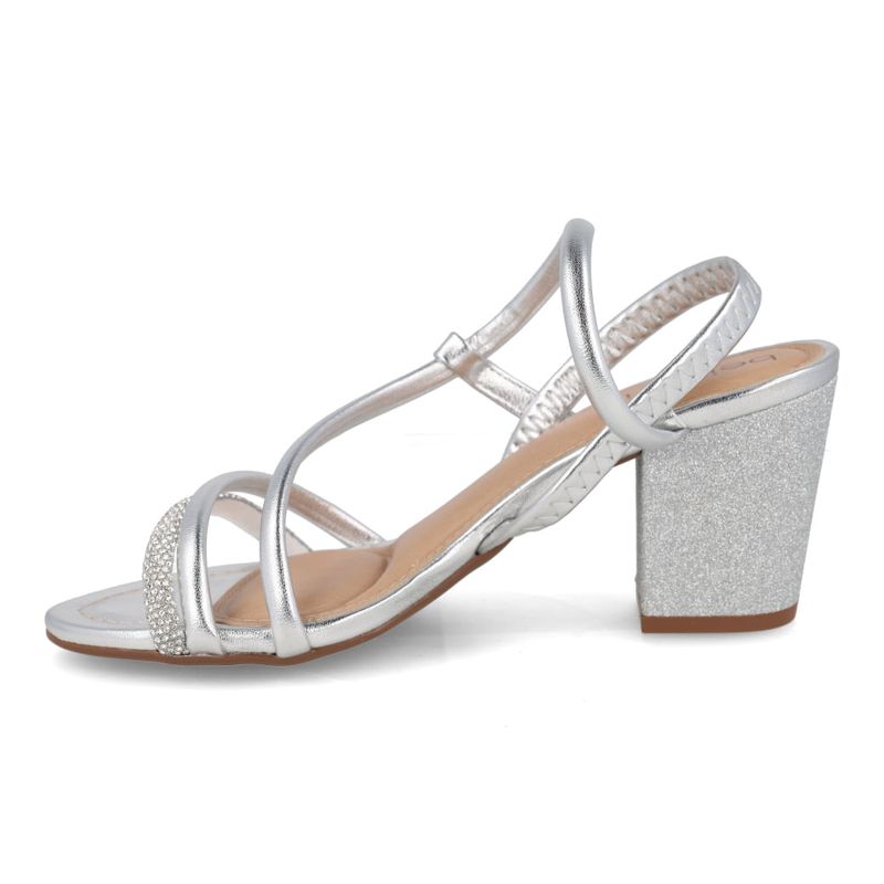 Sandália Beira Rio Casual Feminina Prata Strass Salto Bloco