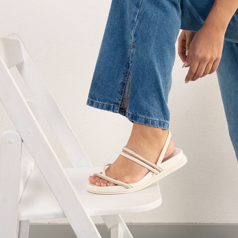 Sandália Feminina Beira Rio Strass Tiras Branco Off