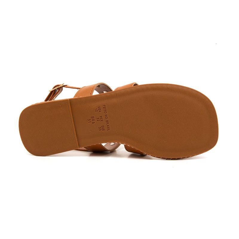 Sandália Infantil Addan Três Tiras Botões Decorativos Marrom