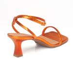 Sandália feminina confeccionada em material de napa e forro sintético; Modelo conta com cabedal em tira única frontal e uma tira fina no tornozelo, com fechamento lateral por fivela; Possui bico quadrado, salto bloco com 3,5 cm de altura e solado em microgel, garantindo durabilidade á sandália; Contém estampa com o nome da marca na palmilha; As sandálias com salto médio são versáteis e combinam com todos os estilos, dos casuais aos mais tradicionais; Aposte em um visual monocromático que alongue sua silhueta, combinando com uma calça de alfaiataria laranja e cropped da mesma cor; As fashionistas amam os saltinhos médios porque eles nunca saem de moda, além de serem confortáveis para usar em diversas ocasiões e com diferentes looks, aposte!