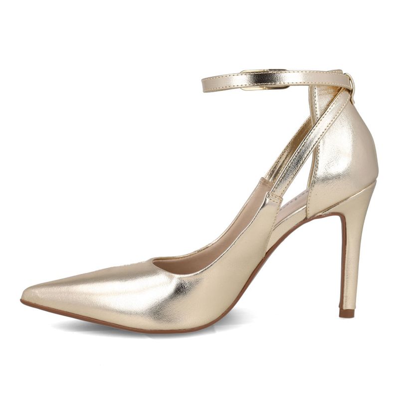 | Detalhe Adicional | Fechamento com tira e fivela no tornozelo; bico fino; salto fino; lateral recortada |