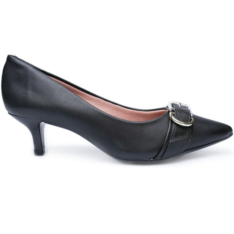 Scarpin Vizzano Salto Médio Bico Fino Fivela Feminino Preto