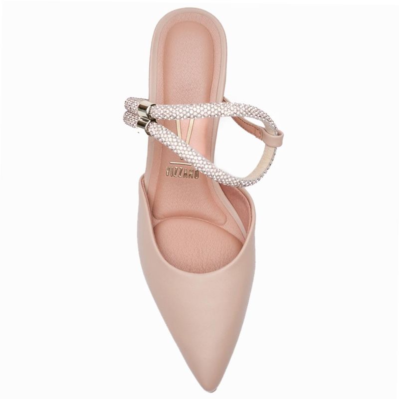 Peça coringa para looks do dia a dia, o Scarpin Vizzano Traseiro Aberto Tira Strass Salto Médio, possui acabamento em pelica, apostando em um shape tradicional junto a um bico fino possui também tiras de strass. Experimente!