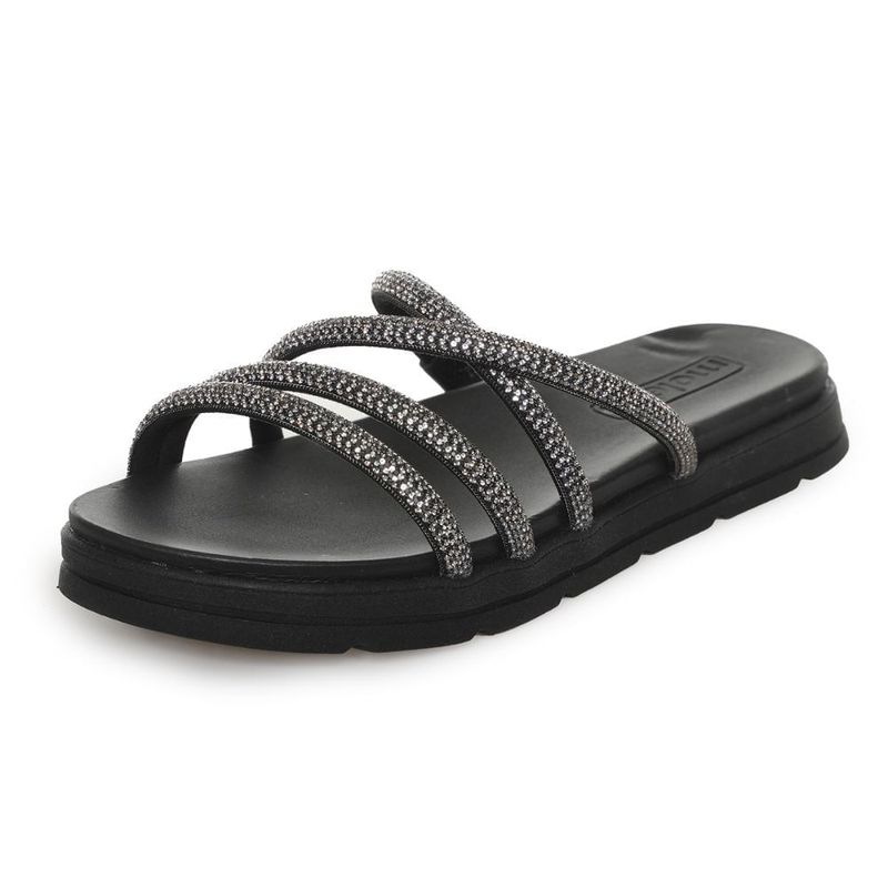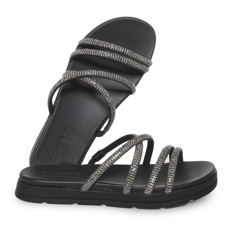 Tamanco Feminino Plataforma Tiras Brilho Moleca Preto