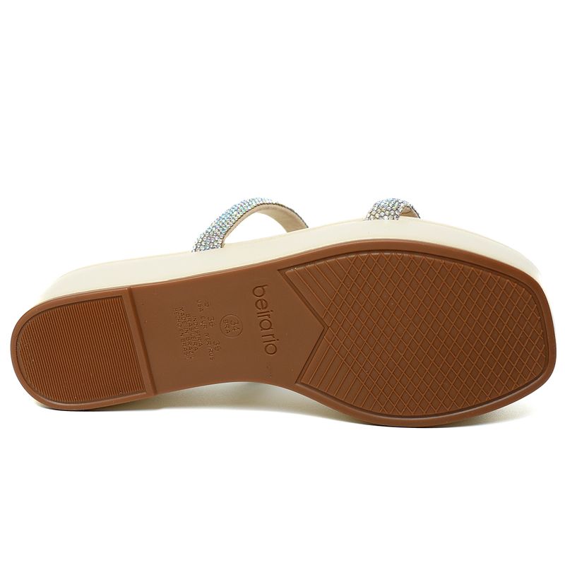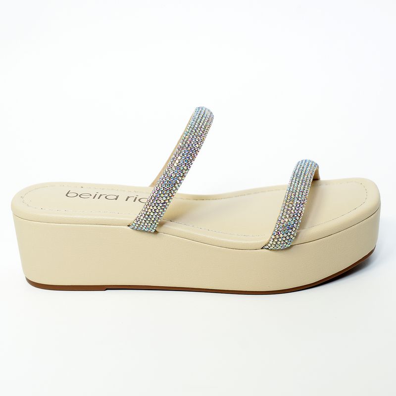 Tamanco Plataforma Beira Rio Tiras Strass Feminino Bege