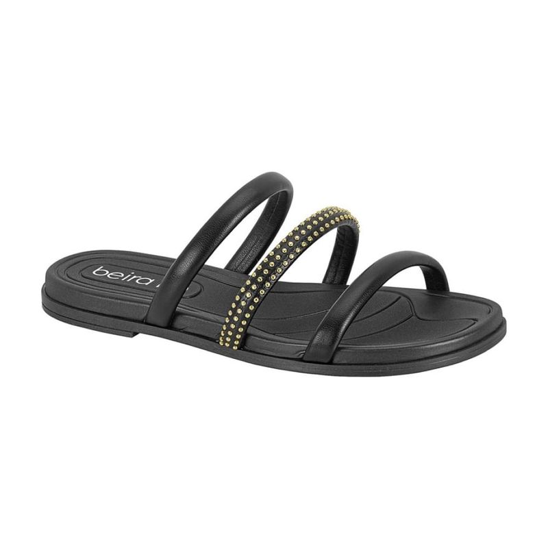 Rasteira Beira Rio Preto e Ouro Light Feminina